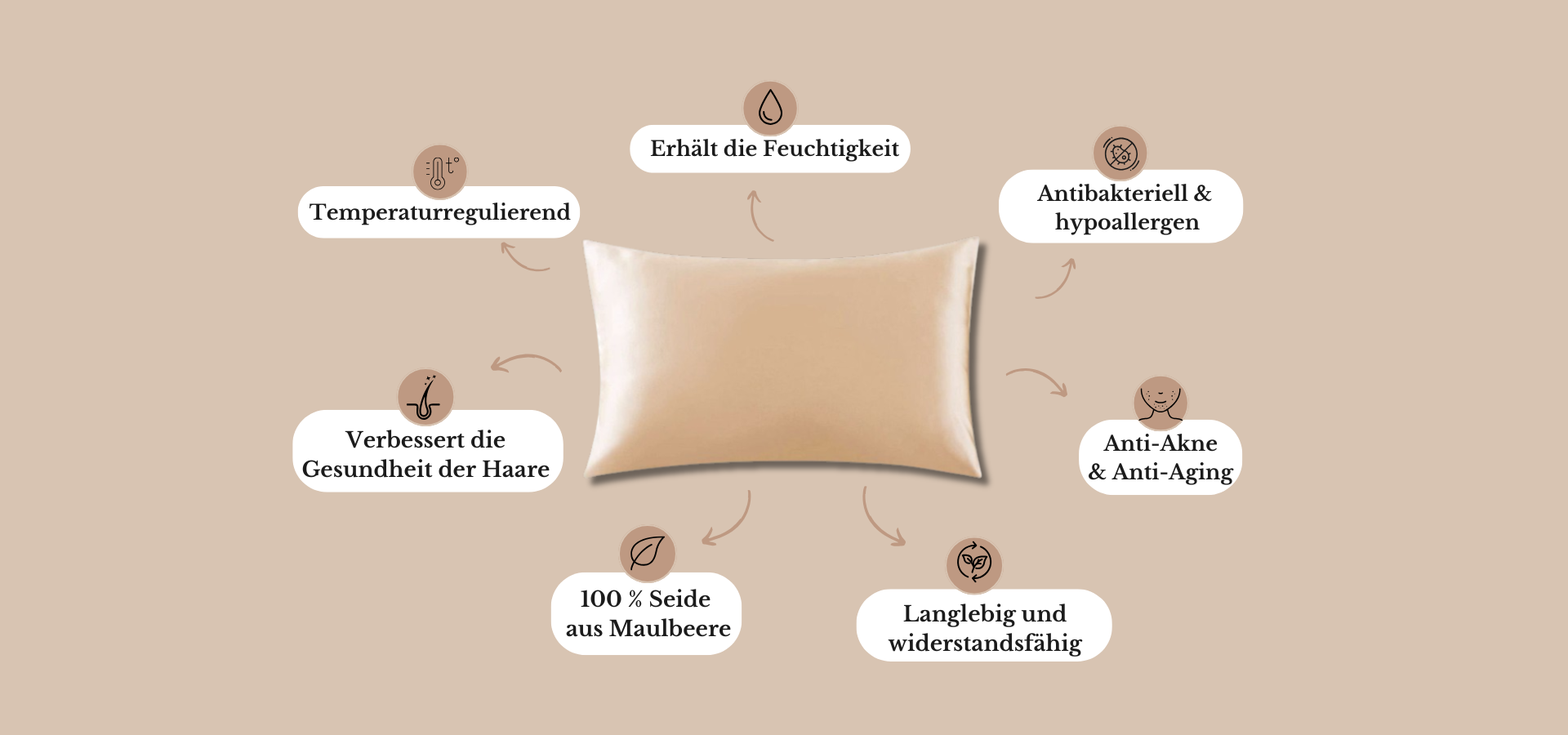 Etwa ein Drittel unseres Lebens verbringen wir auf unseren Kissenbezügen. Dank ihrer 18 natürlichen Aminosäuren bekämpft Seide die Zeichen der Hautalterung, glättet Schlaffältchen und spendet der Haut Feuchtigkeit.