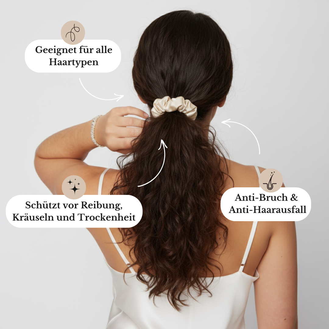 Absolut! Das Tragen eines Seiden-Haargummis schützt Ihr Haar nachts vor Reibung am Kissen und reduziert so Haarbruch und Verfilzungen.